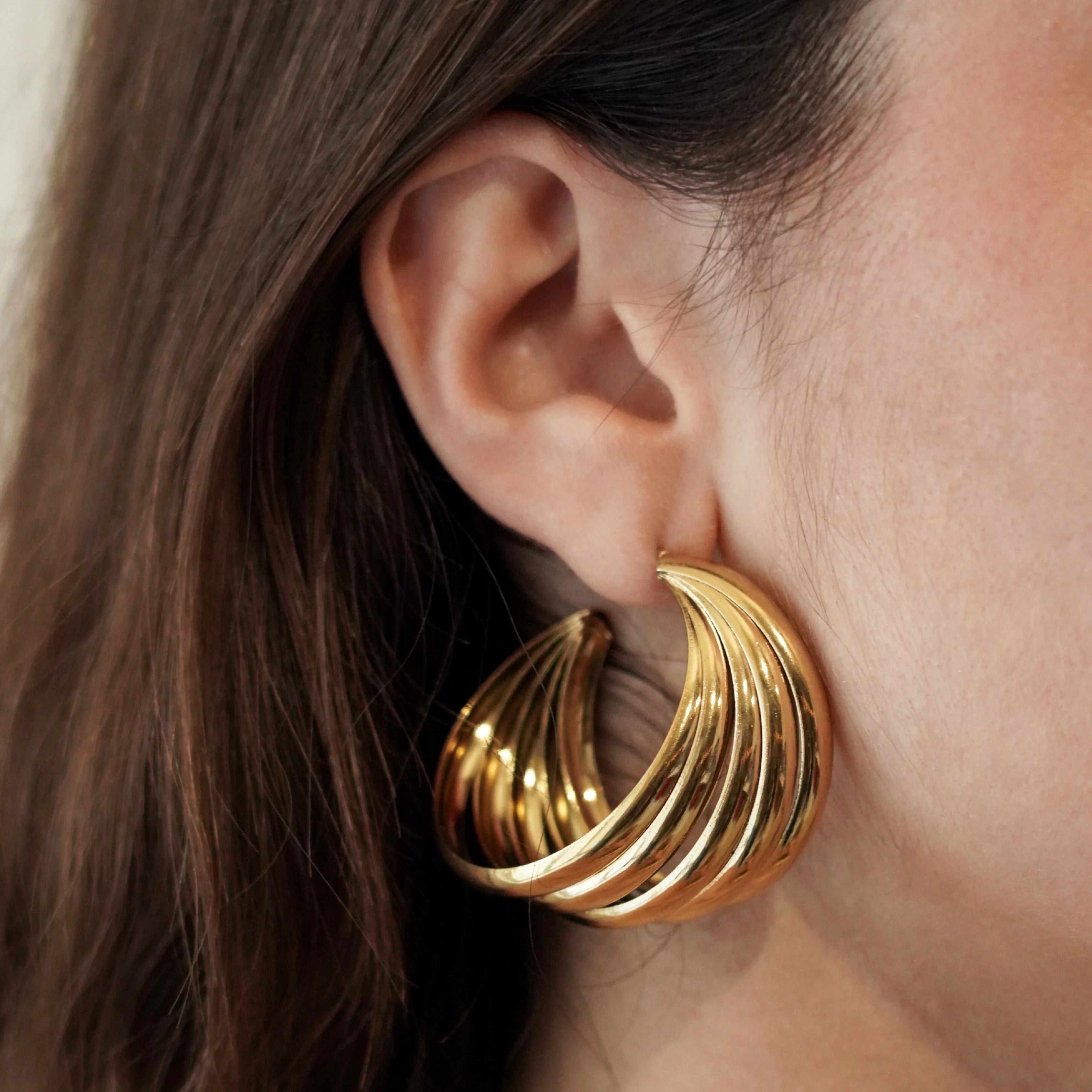 Portez les boucles LOLA seules pour un look fort et assumé, ou associez-les à un collier fin ou une chaîne dorée pour équilibrer les volumes. Elles se marient parfaitement avec des bijoux minimalistes pour un contraste chic et moderne.
